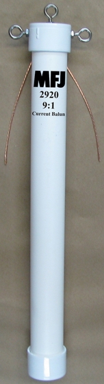 ◇ MFJ-2920― エレメントワイヤーを両方のアイボルトに通し、バランに付属の銅線に半田付けや加締めて固定する、スタンダードなバランです。ヘビーデューティー仕様、耐候性あるPVC管に収納。下部には